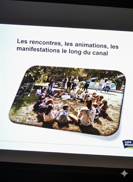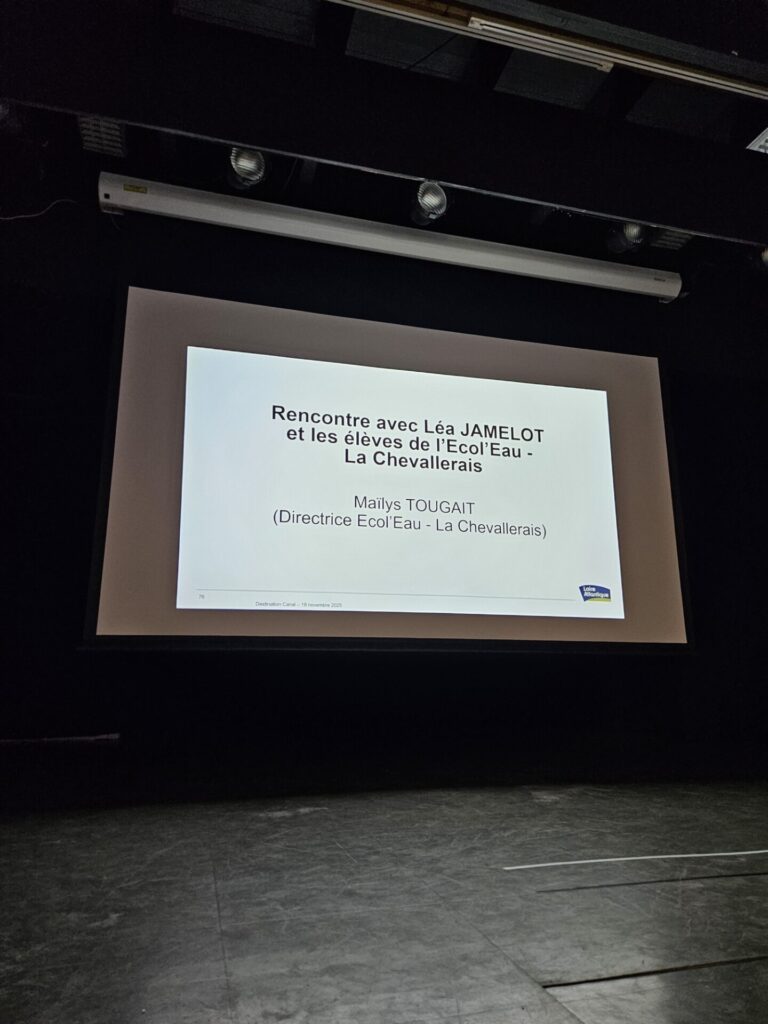 Léa Jamelot, qui a traversé le canal de Nantes à Brest en kayak en juin dernier, était l’invitée d’honneur de cette réunion. Son aventure a d’ailleurs servi de fil rouge et de témoignage pour faire le lien entre les différentes thématiques. Un extrait de son film a été diffusé : l’extrait qui correspond à son passage à La Chevallerais !  Maïlys Tougait a ensuite été invitée à raconter la rencontre entre sa classe et Léa, le 2 juin dernier, et à témoigner du beau moment vécu par tous les enfants, cette impression de faire un peu l’école buissonnière tout en apprenant de belles valeurs : protection du patrimoine, dépassement de soi, partage.