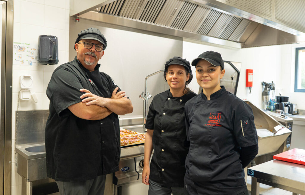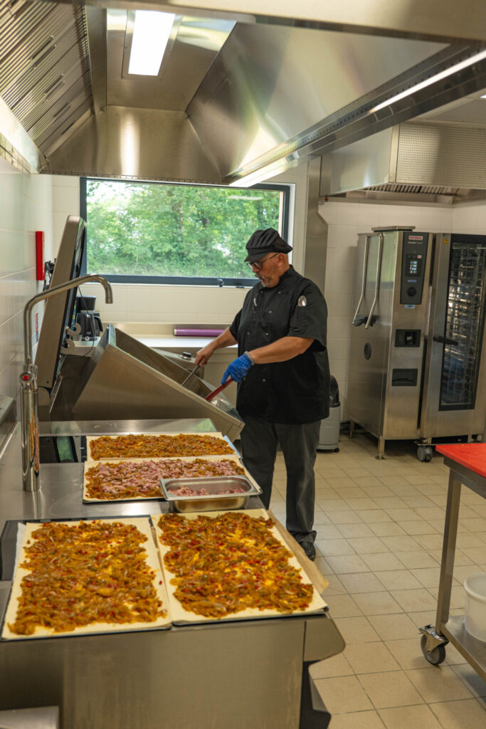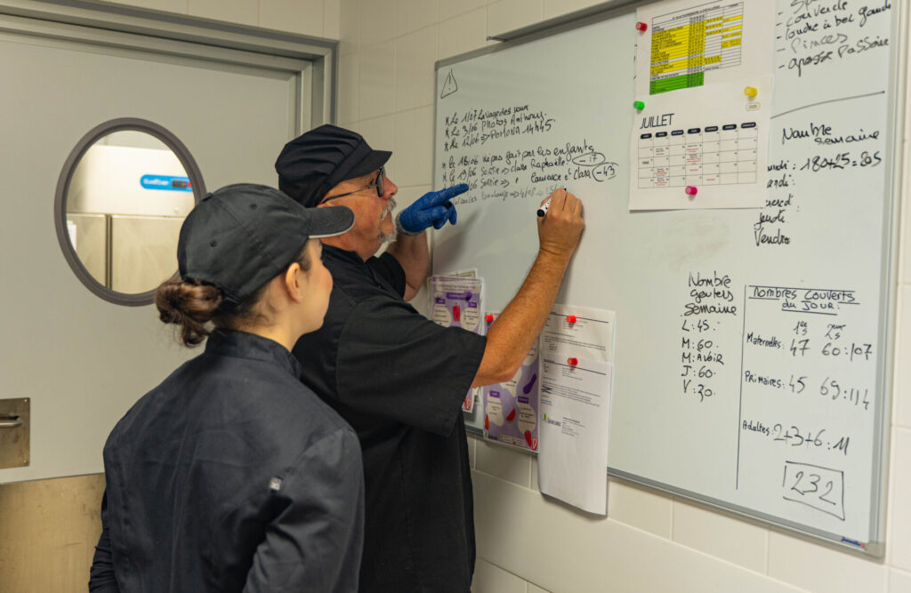 Les repas sont concoctés sur place par un chef, Martial, et sa seconde de cuisine, Marie-Laure. Les produits sont à 35 % bio et le plus possible achetés autour de La Chevallerais (30 %) ou dans la Région (31 % de produits régionaux).
